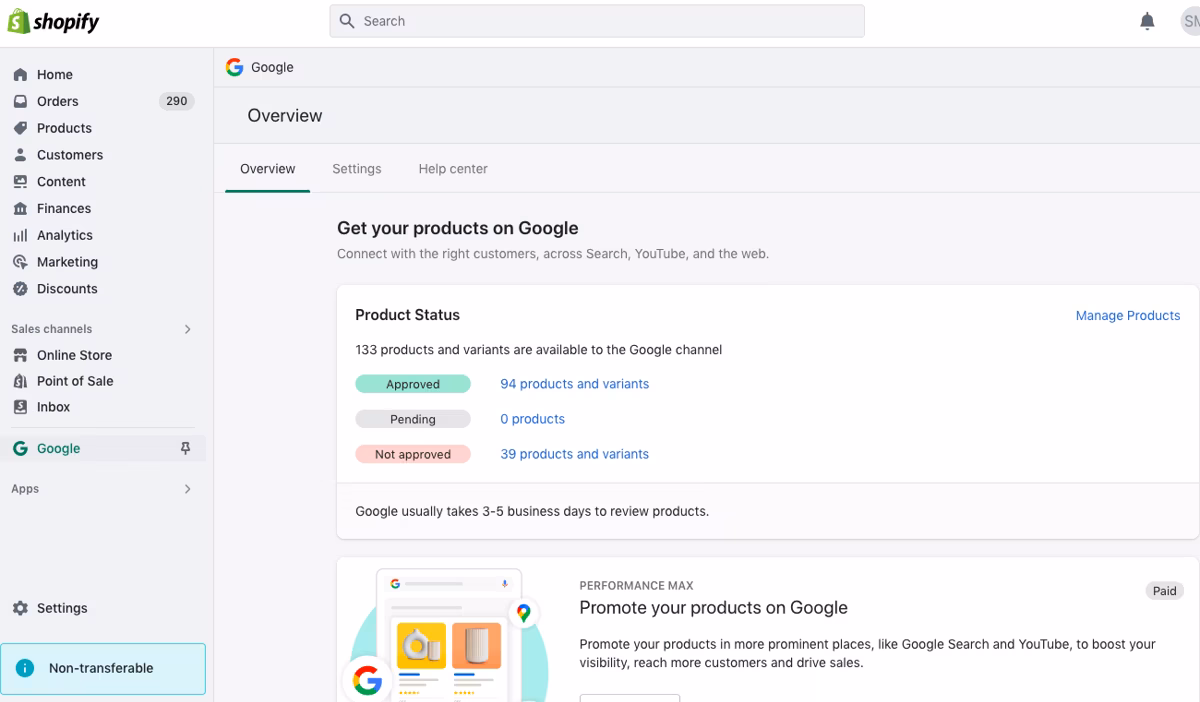 If you receive a notification that some of your products aren’t approved by Google, you need to first find the source of the issue. The Google Channel in Shopify Admin will display your products as either approved, pending, or not approved, but you may not be able to tell why.