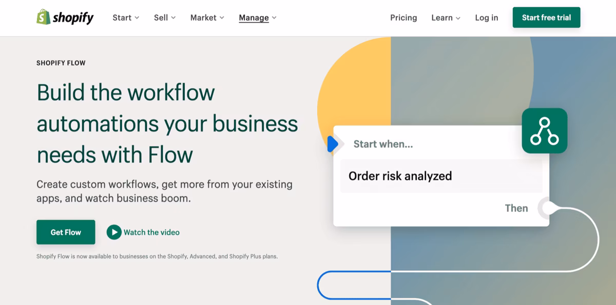 To access Shopify Flow, you’ll need to be on a Shopify Plus or Shopify Advanced plan and first install it from the App Store. If you’re on a basic Shopify plan, React Flow is a good alternative on the Shopify App Store.